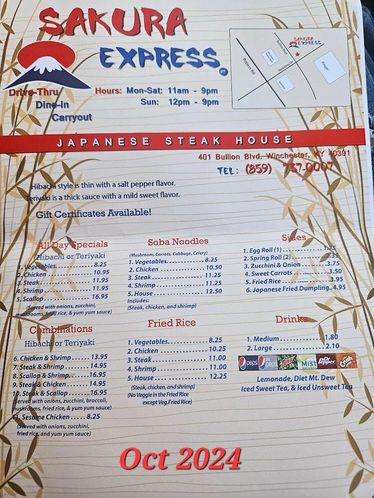 The menu at Sakura Express features a delightful range of East Asian dishes, focusing on hibachi delights and comforting noodle bowls. Expect classic flavors that resonate with fans of Japanese cuisine. Optimal choices include teriyaki steak and chicken along with tasty soba and fried rice options.